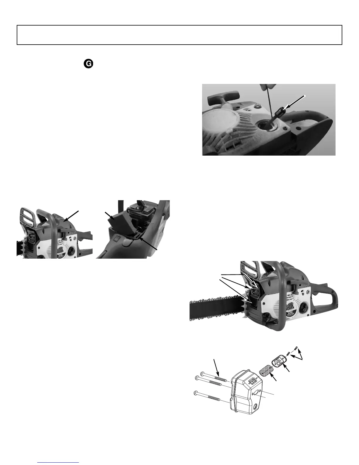Ne jamais utiliser la tronçonneuse sans filtre à air