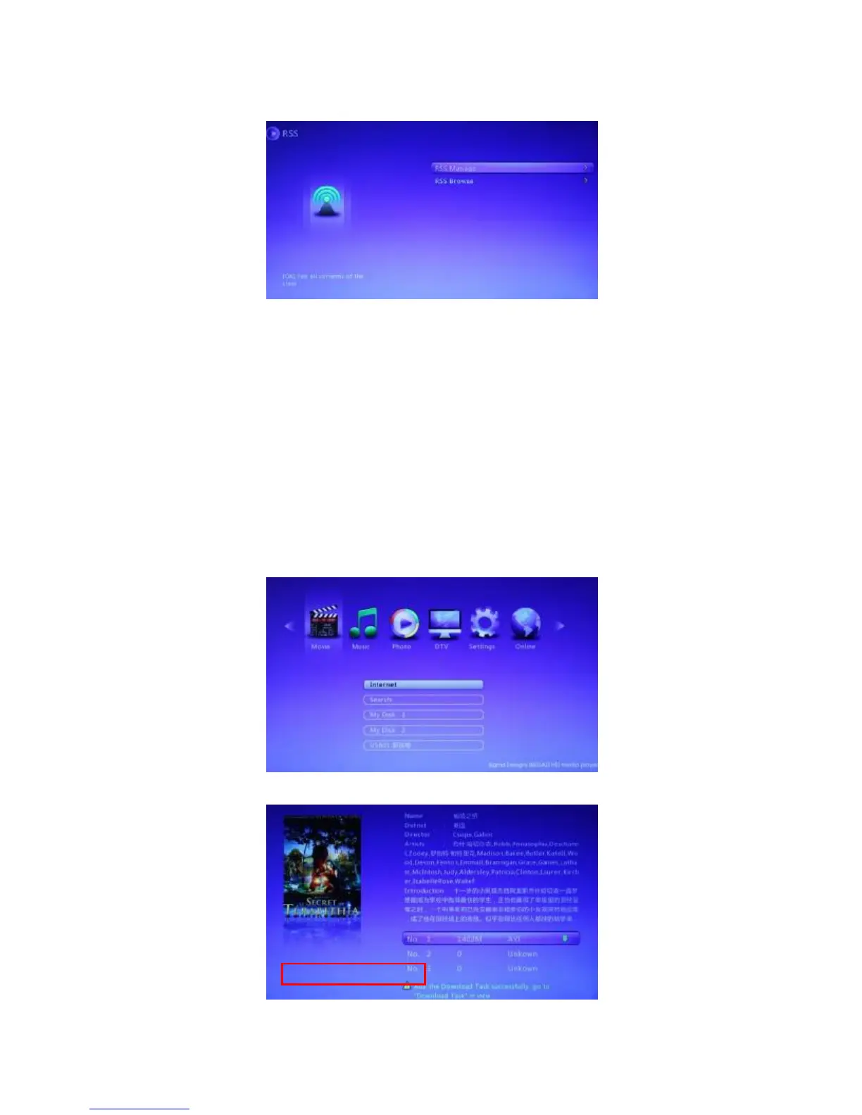 1. Select the RSS manage option; press Ok key to edit the RSS.