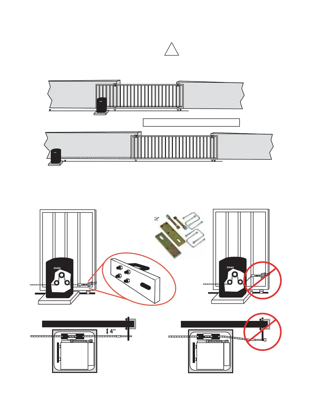 Minimum space between gate and output sprocket must be 4". After you position the gate operator, bolt-down