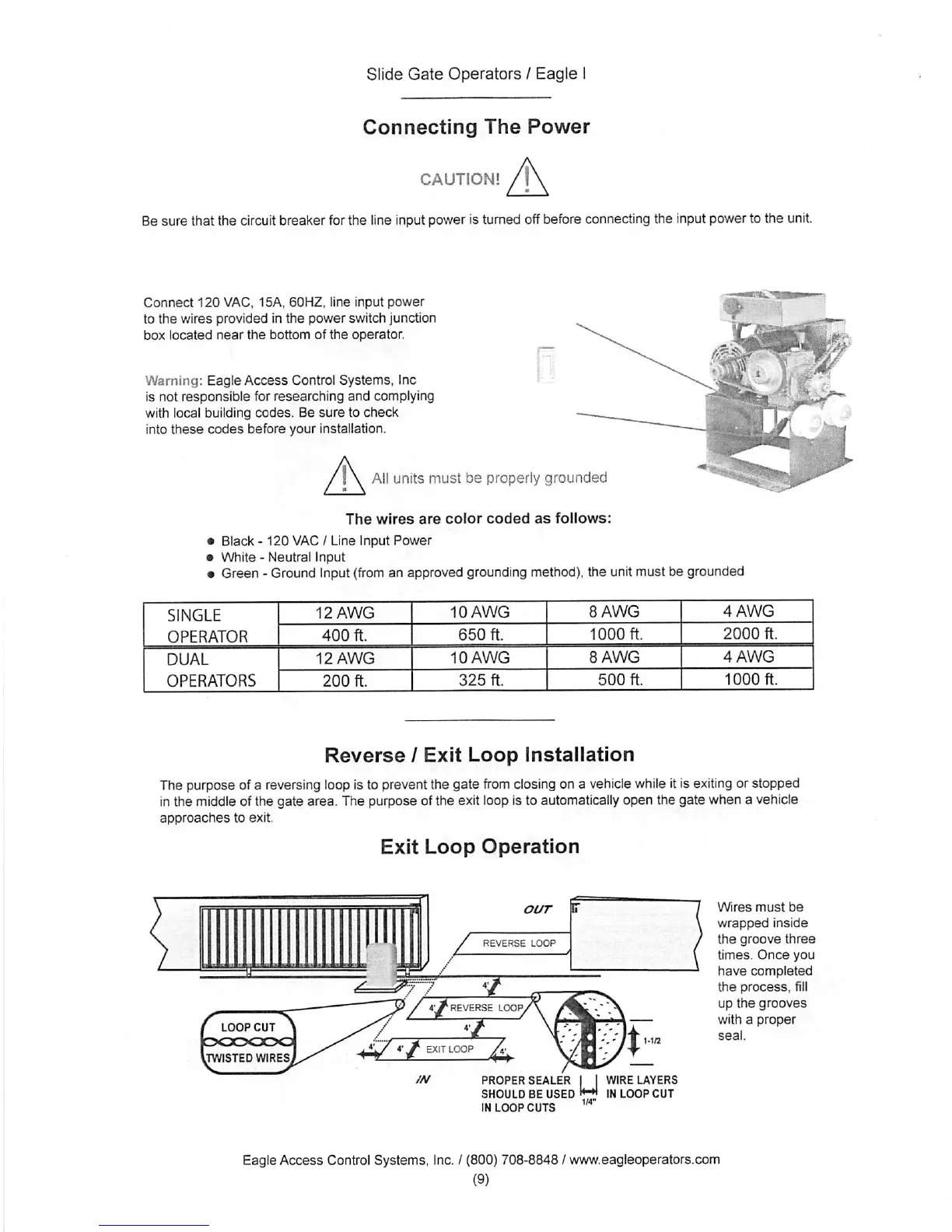 Eagle Access Control Systems Eagle I - Power and Loop Installation Guide; Connecting Main Power Supply; Reversing and Exit Loop Wiring