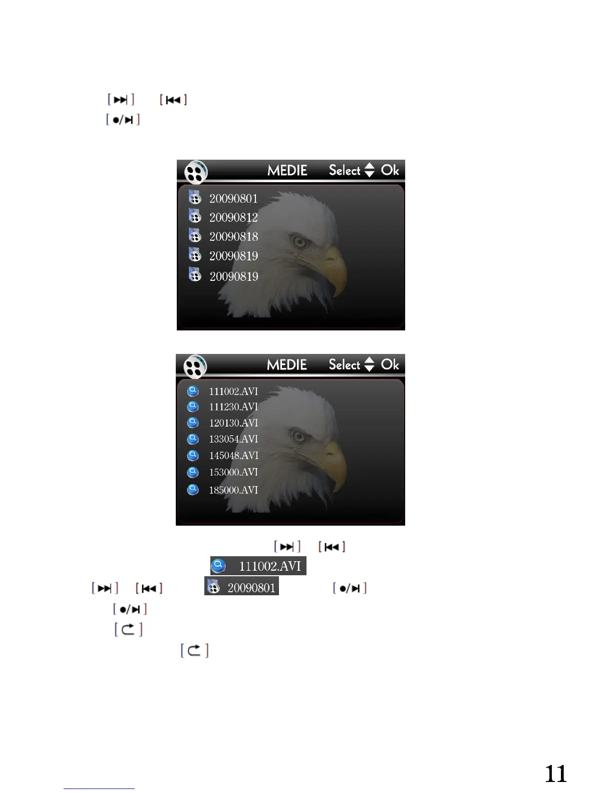 Aft④ er enter the video folders, use or to choose the video files that you want