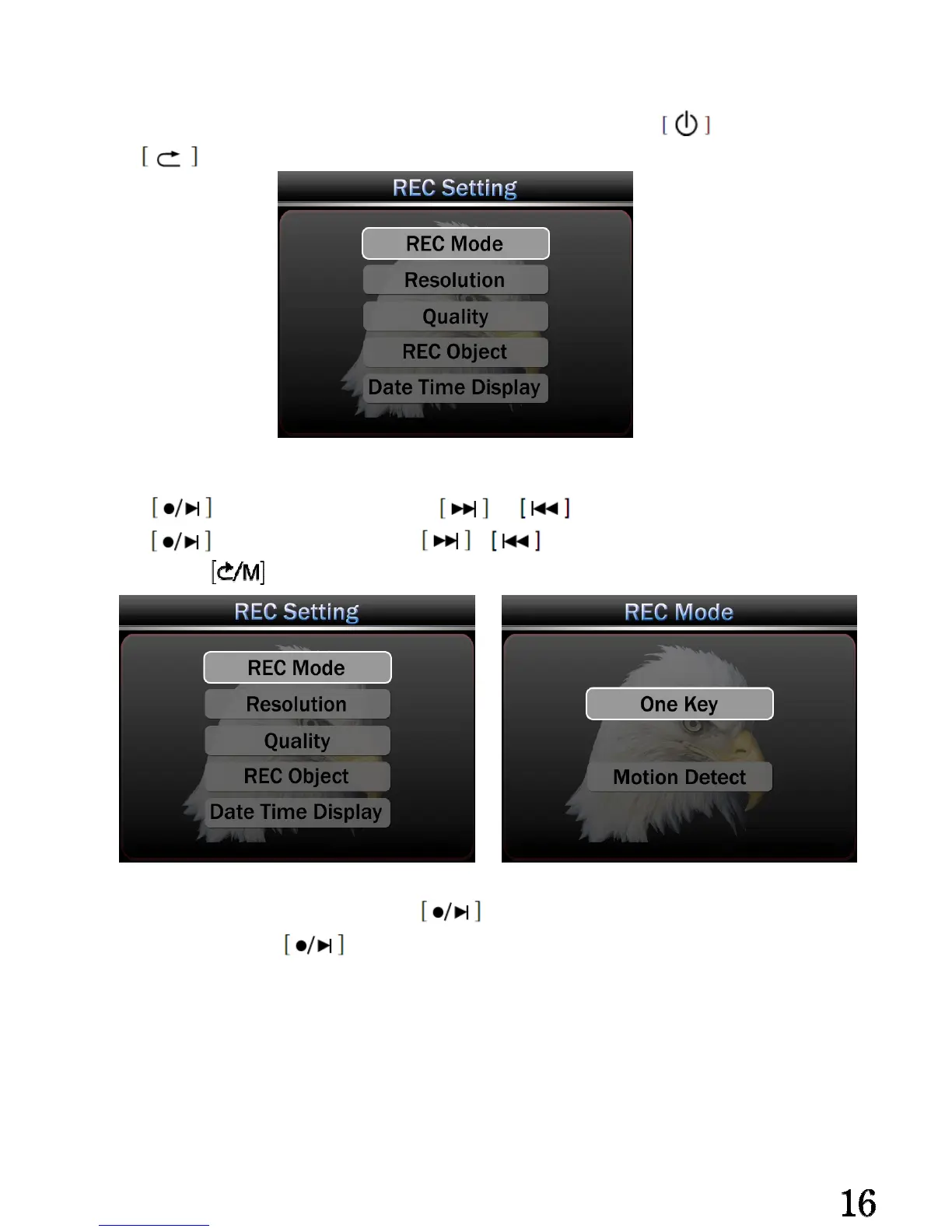 Press enter REC Setting,press or to select your preference setting。