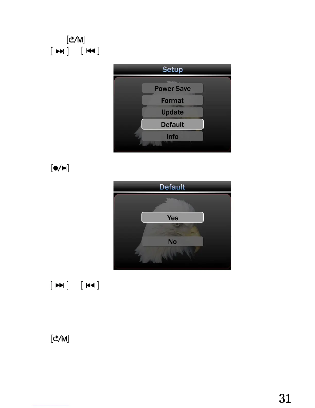 Eagle Eye DV207 - Revert Default Settings; Accessing Default Option; Factory Reset Confirmation