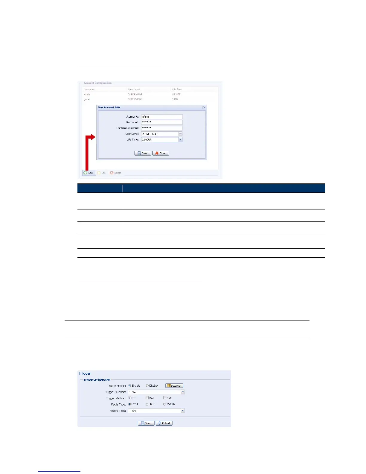 User Level Set the security level of an account to give the permission to control different functions. There are four