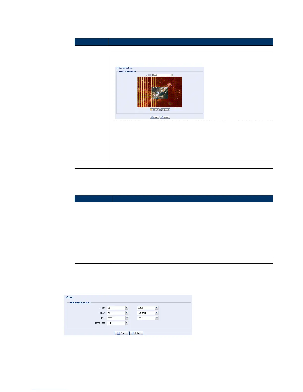 In this section, you can select to enable or disable motion detection.