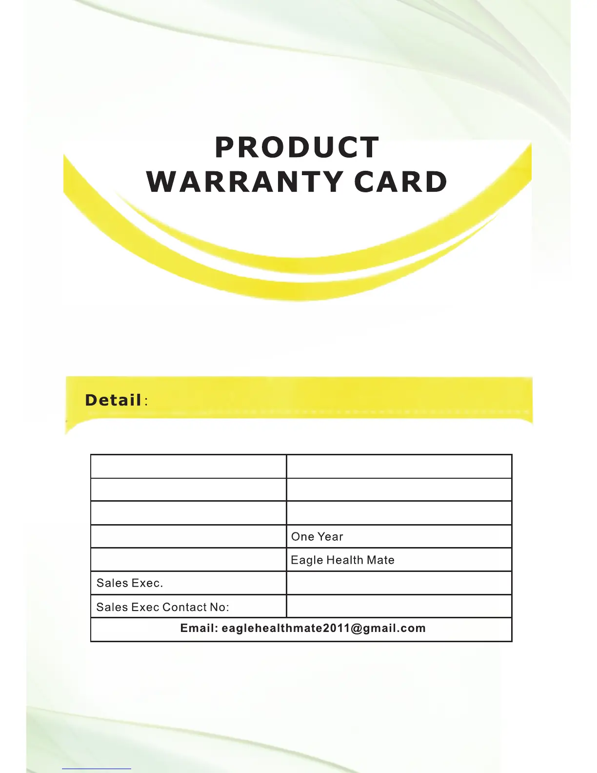 Note: Keep this card safe. This Card and invoice are required for repairs