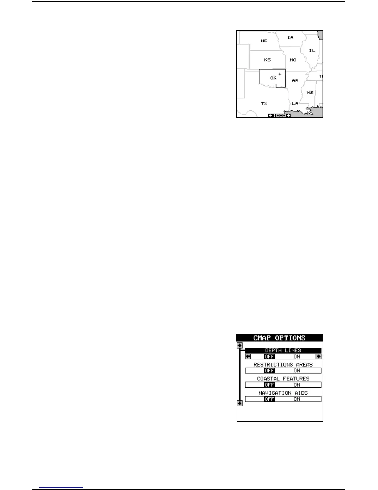 IMS SmartMap, Navionics, or C-MAP cartridge. The unit can only show