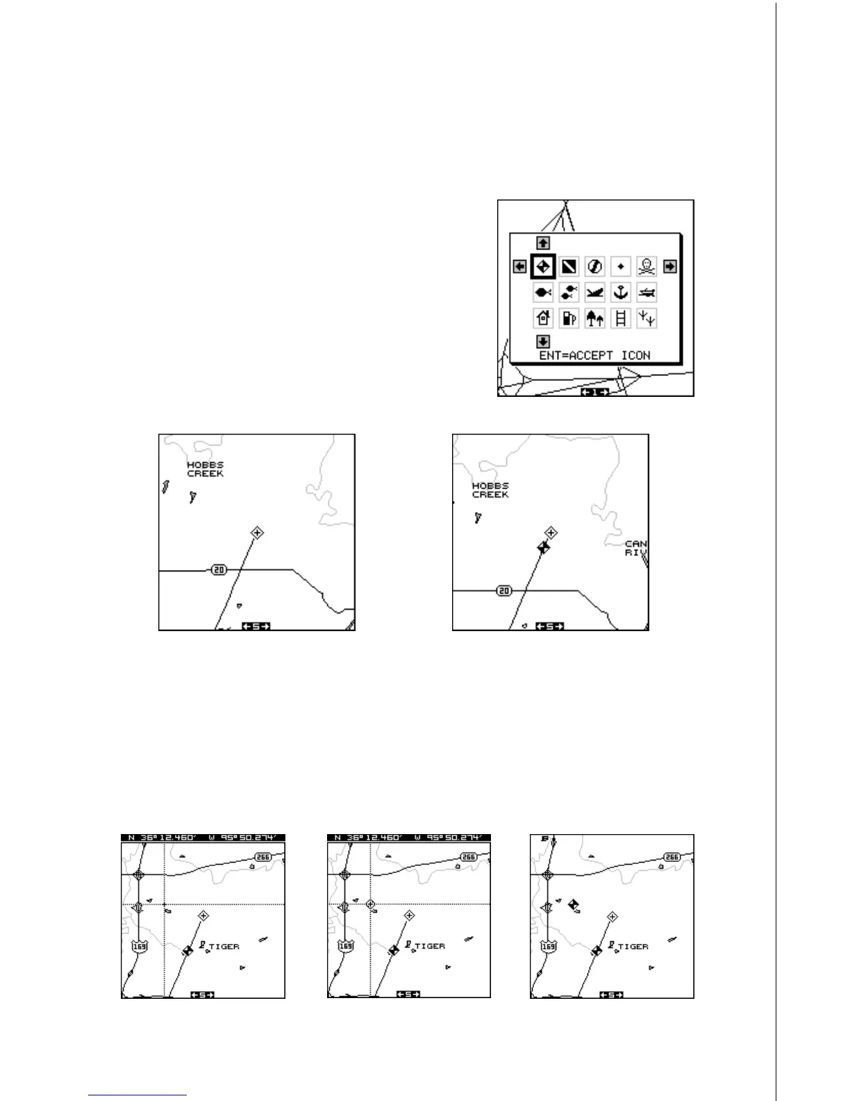 press the ENT key. The mapping screen reappears with the icon at the