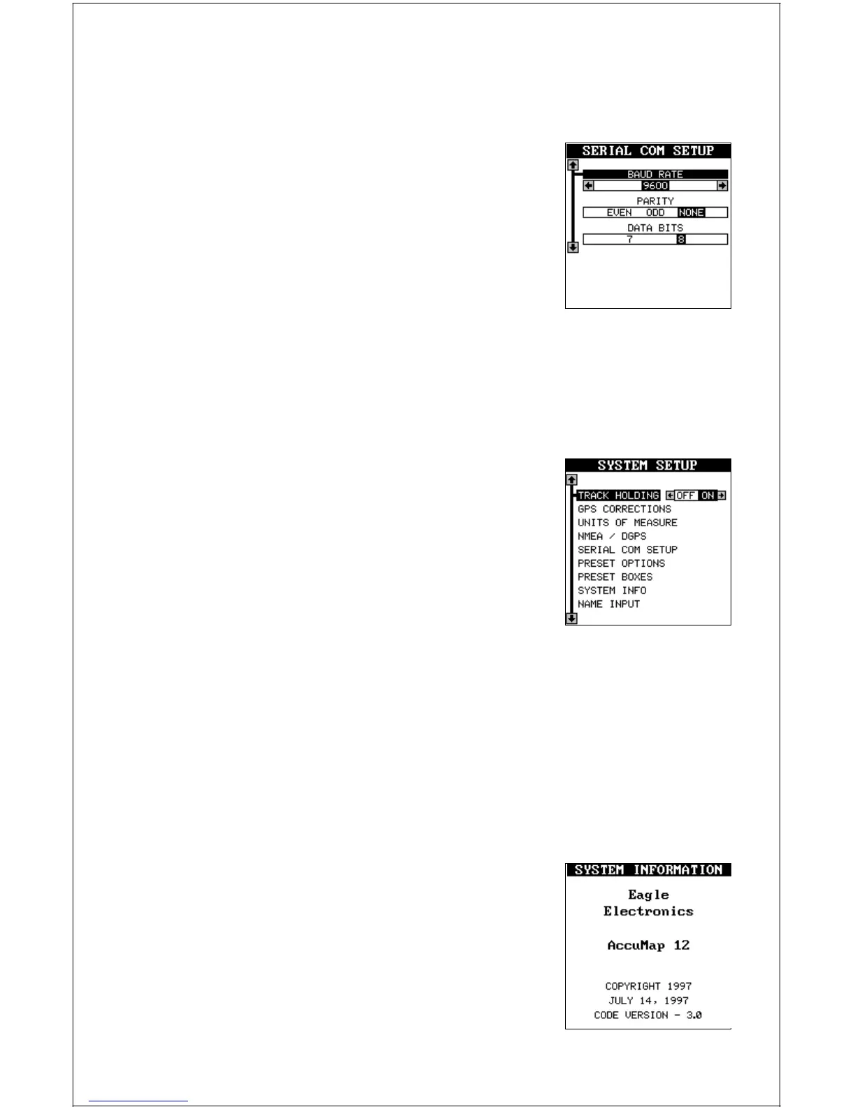 parity, and 8 data bits. Press the EXIT key to erase this menu.