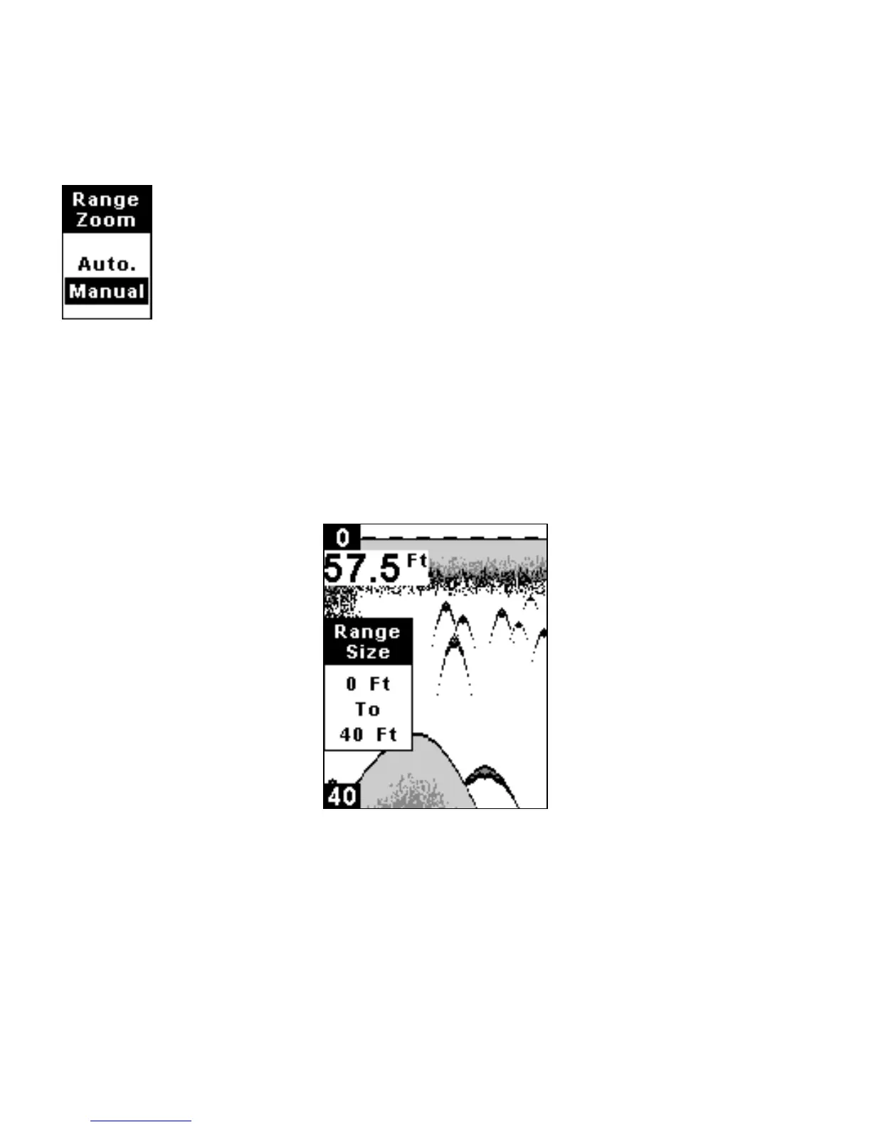 Range Size menu with manual depth range set to 40 feet. This in effect
