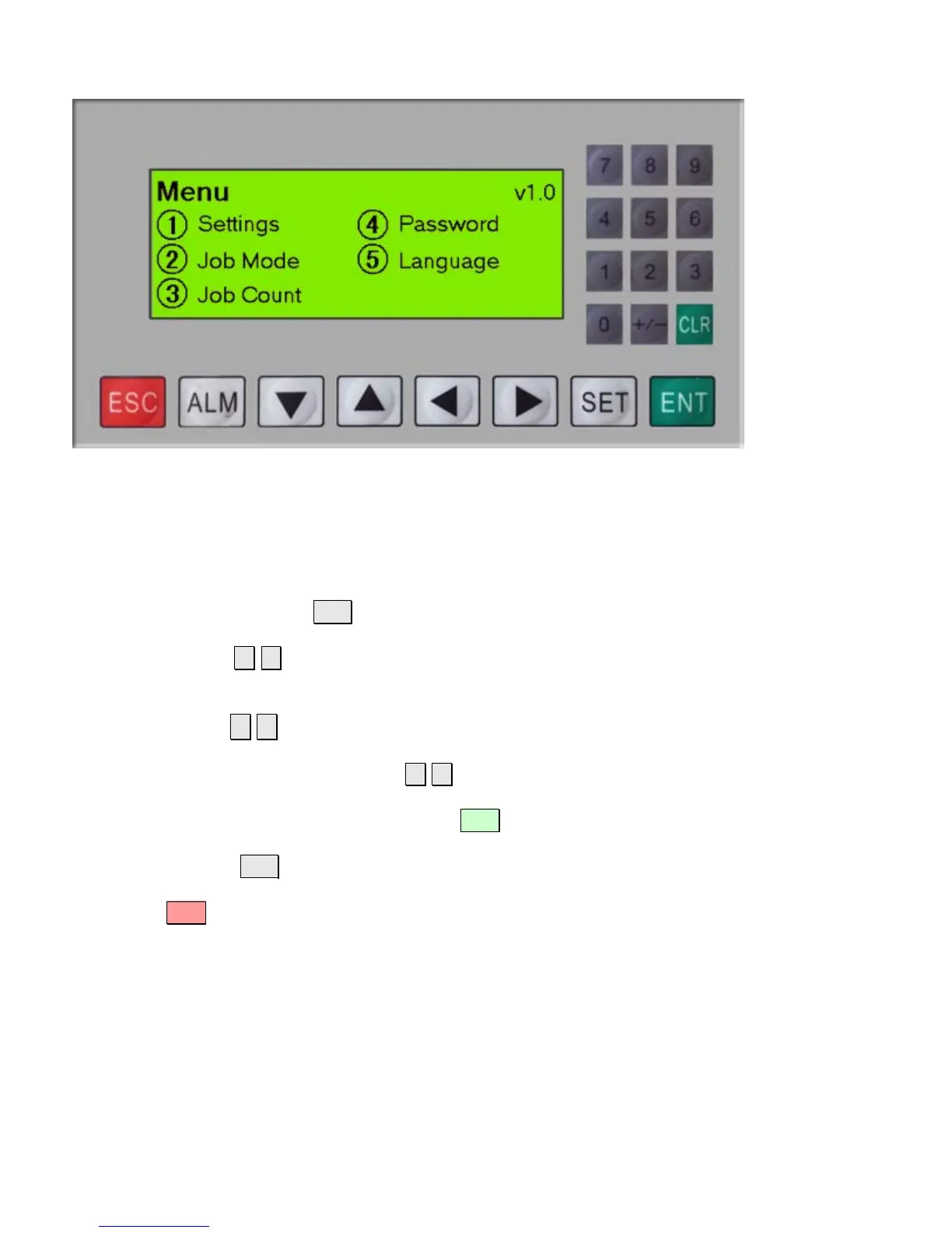 operational parameters. Active keys are shown with a circle or square around them. Pressing the