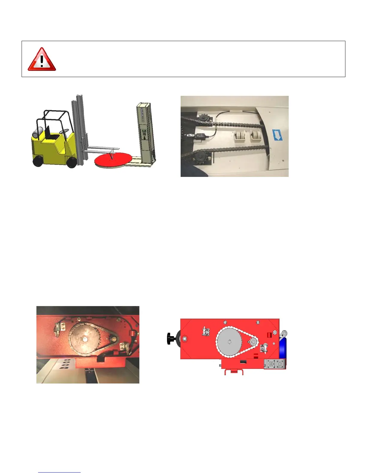 Lift the turntable just clear of the frame and use the forklift to remove the table. For safety reasons,