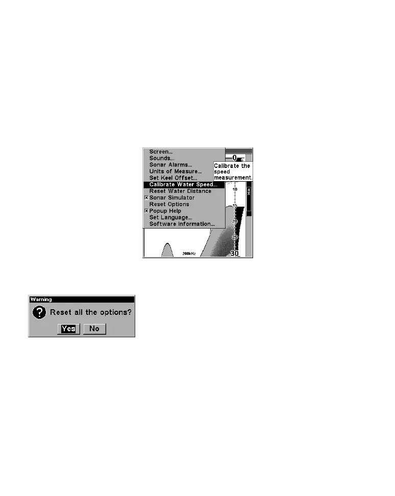 Pop-up Help message for the Calibrate Water Speed command.