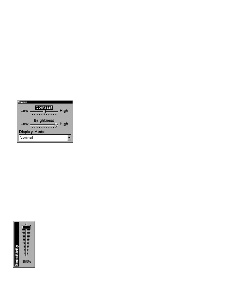 BRIGHTNESS. Press → or ← to move the bar. The left end of