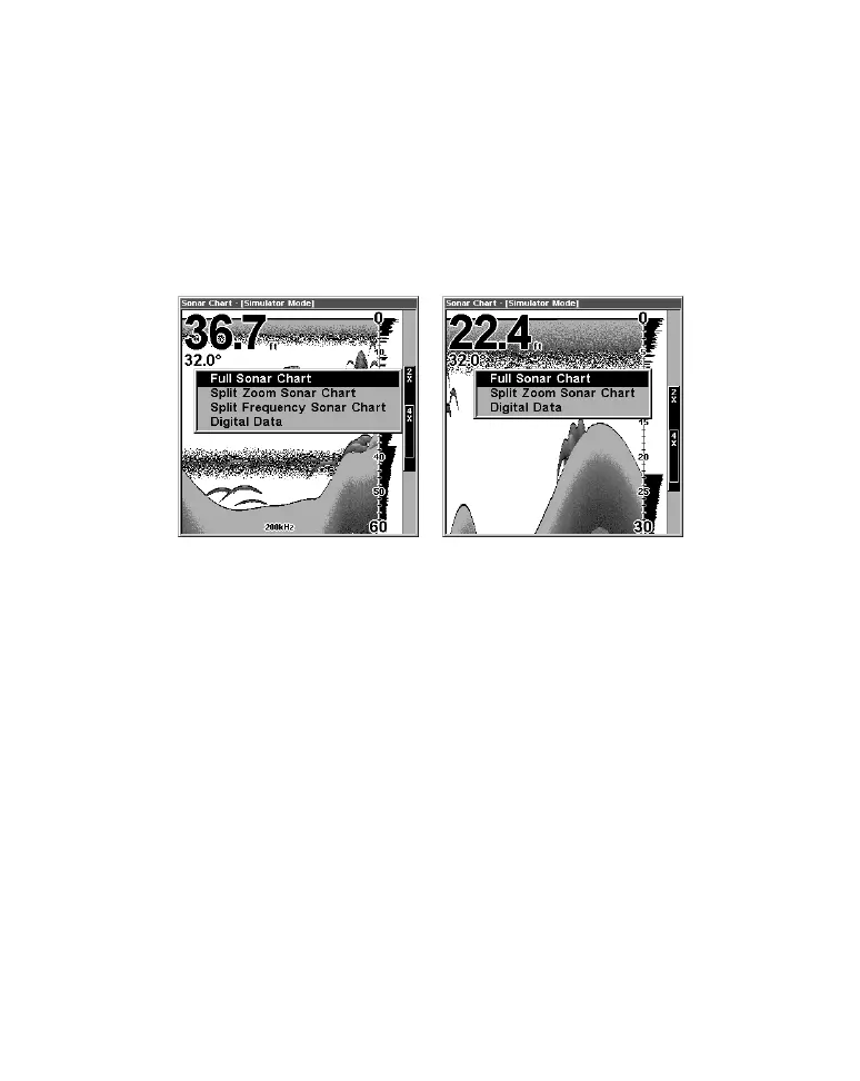 Pages Menu showing sonar chart display options