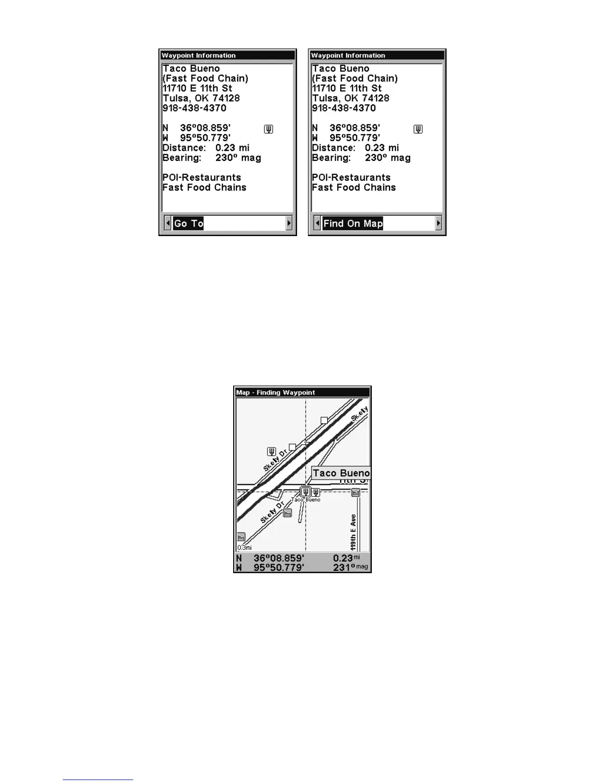 restaurant' s POI symbol. A pop-up data box shows the POI's name. A
