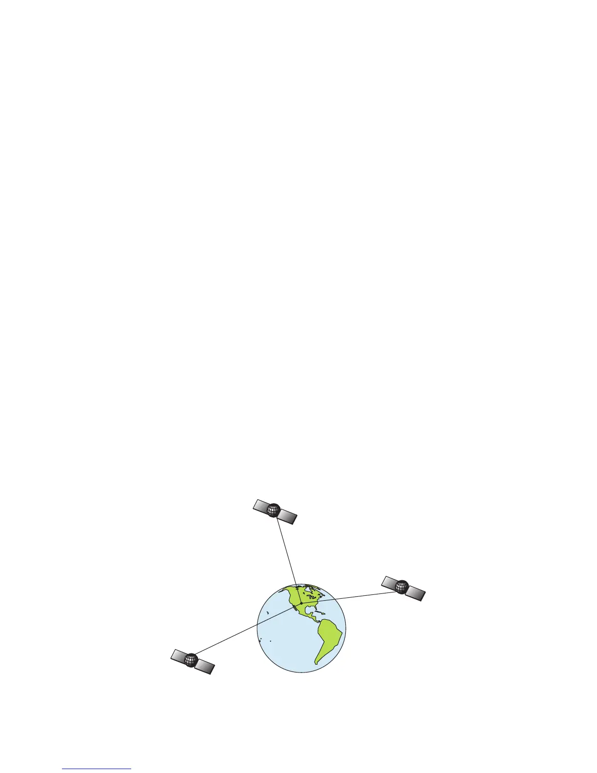 sky. Each satellite broadcasts a low-power signal that identifies the satel-