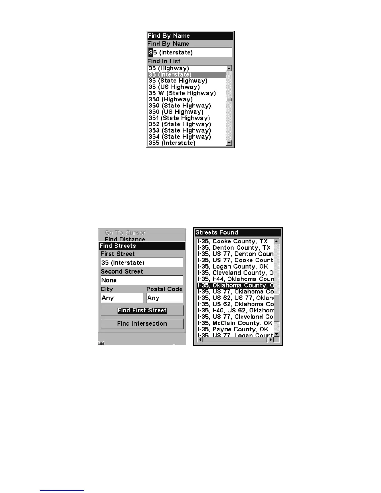 pears, press ↑ or ↓ to select the street you are searching for and press
