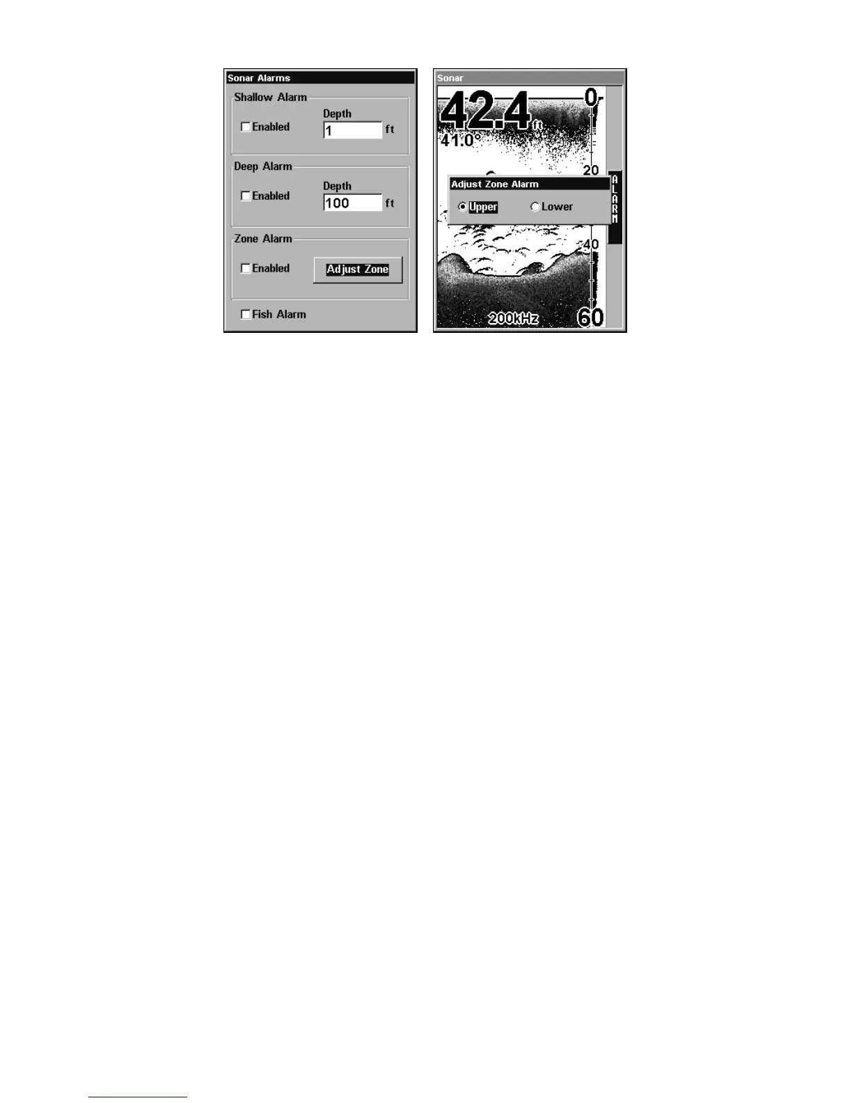 To switch to a different depth setting, open the Sonar Alarms menu and