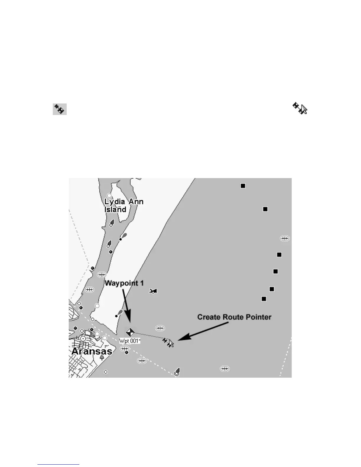 becomes an arrow with a route symbol, two waypoints