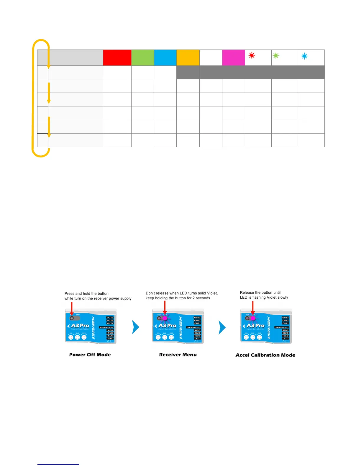 calibrating, LED will flash Blue several times and then light up solid in Blue. Don’t move the gyro until the calibration is done.