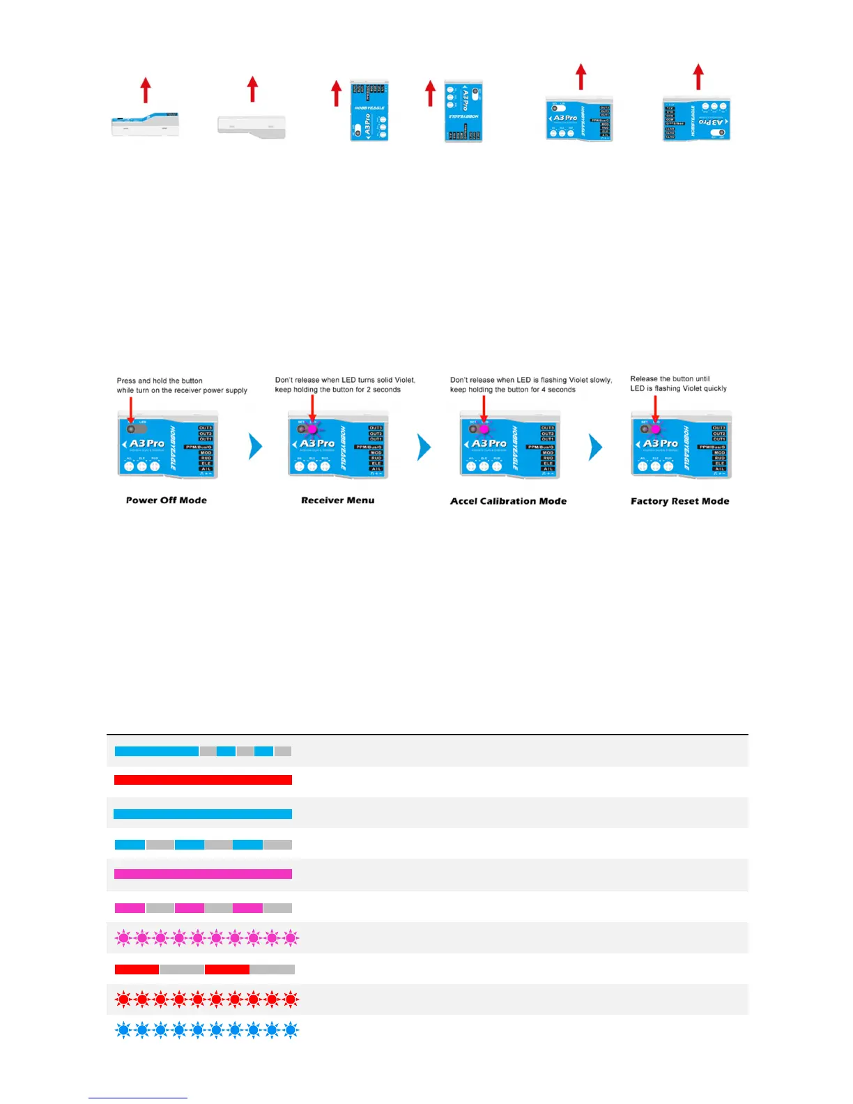 flashes Violet once slowly to confirm the reset. After reset is done, the gyro will start the initialization normally. If you don’t