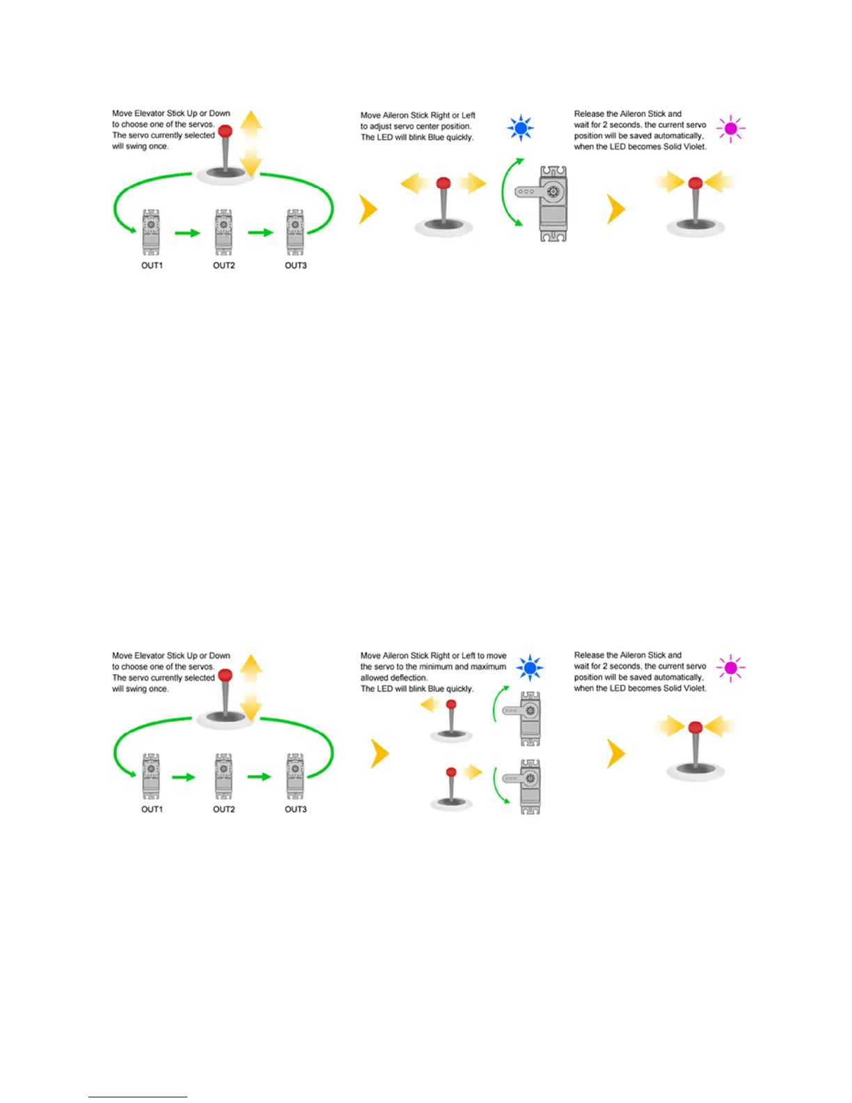 blue and a rapid red blinking indicates that the servo has reached the maximum center position allowed. The new neutral