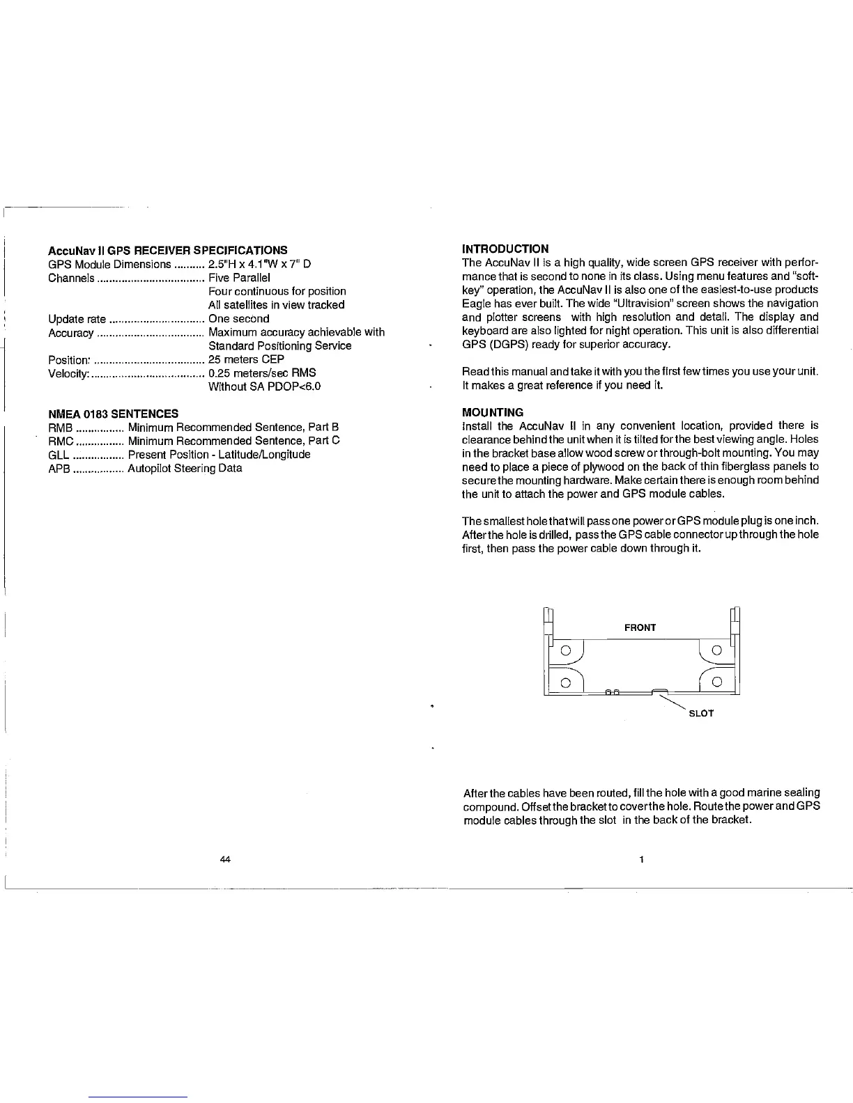 AccuNav II GPS RECEIVER SPECIFICATIONS