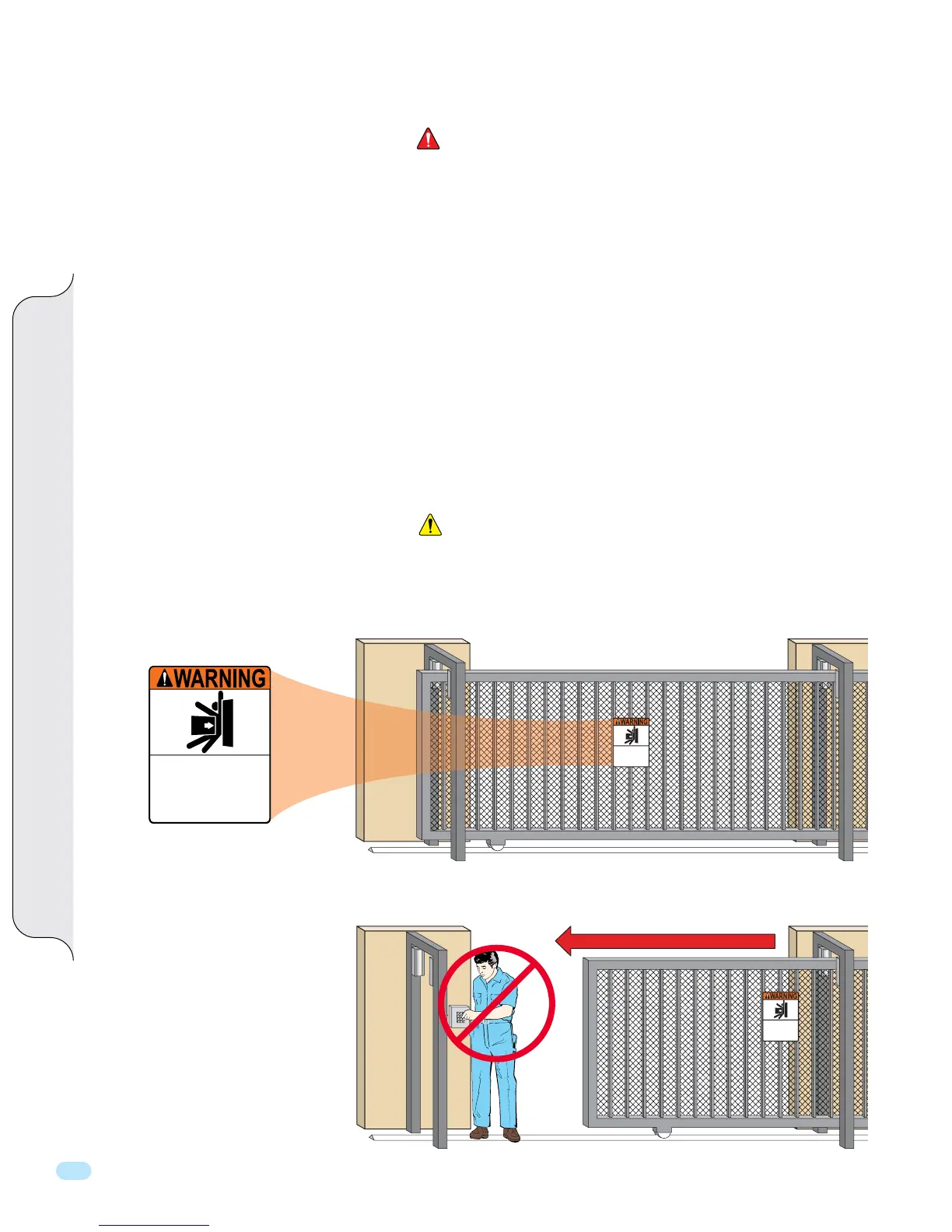 2. Always keep people and objects away from gate. NO ONE SHOULD CROSS THE PATH OF THE MOVING GATE.
