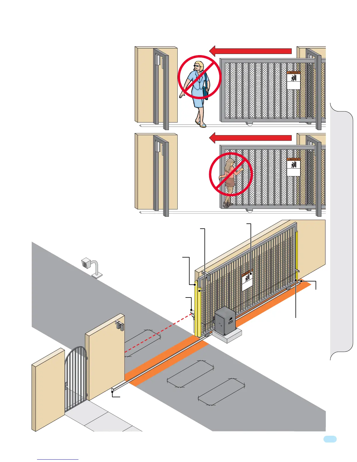 KEEP CLEAR! Gate may move at any time