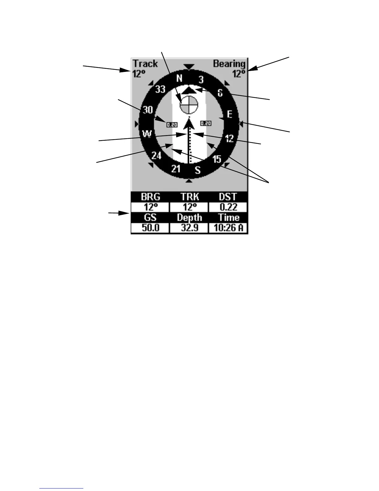 In the example figure above, the driver is headed north (a 12º track)
