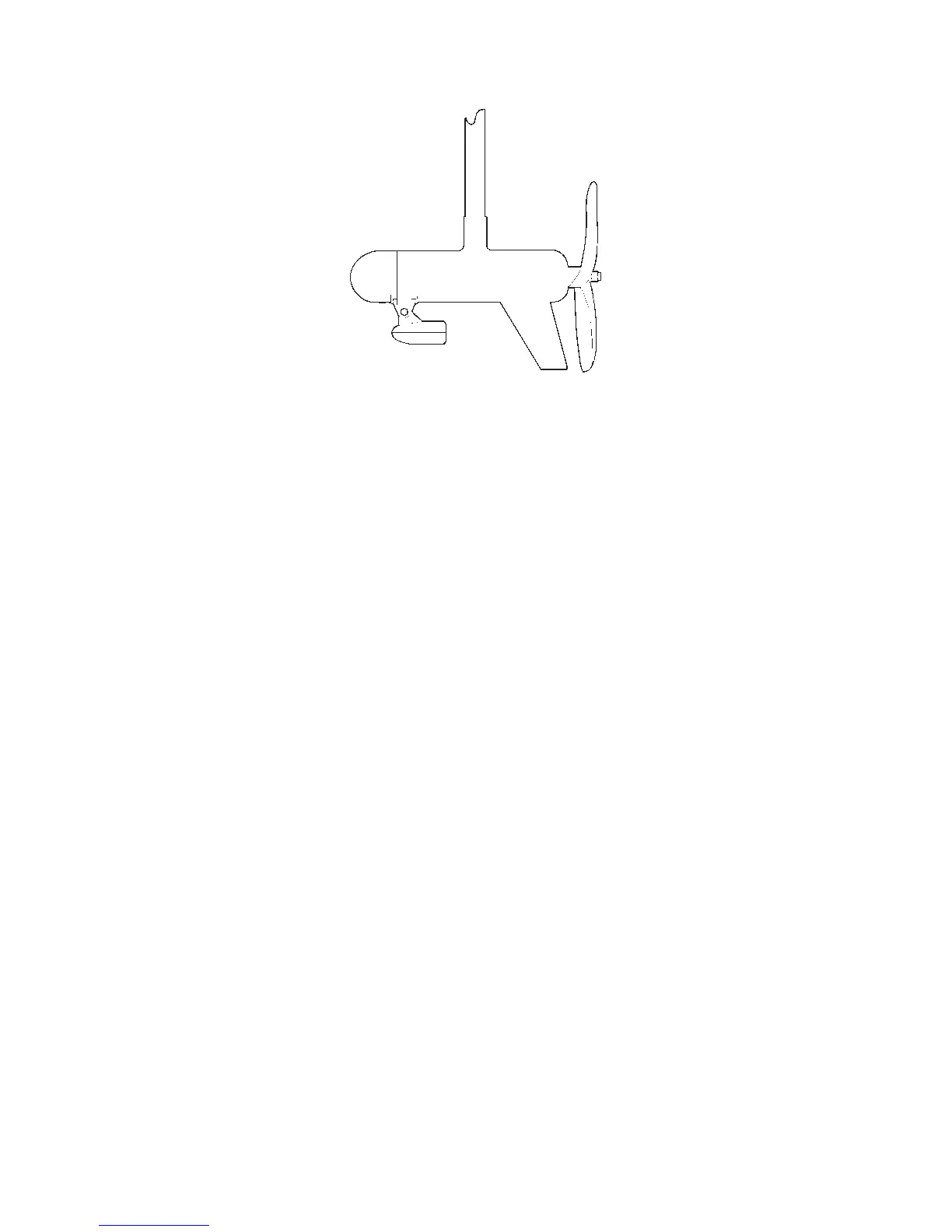 Transducer mounted on trolling motor, side view.