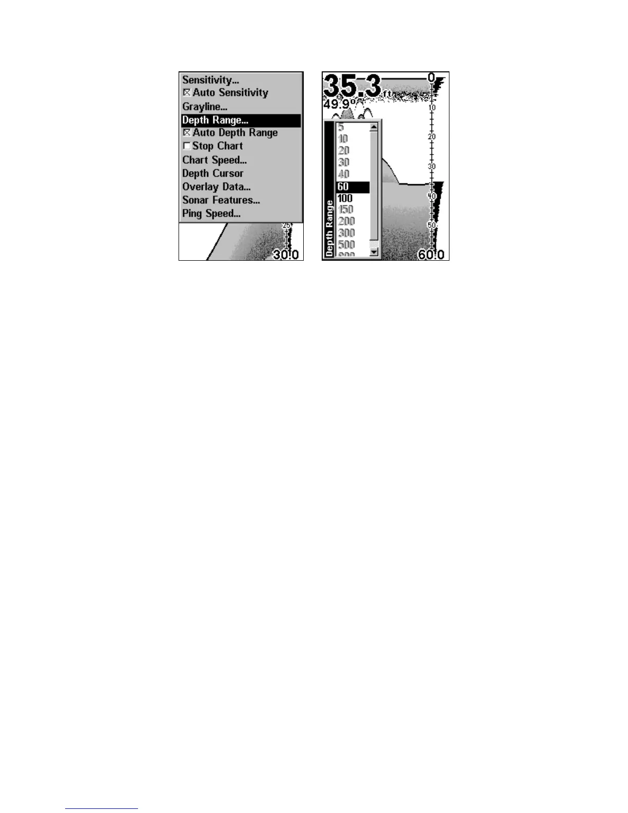 1. Turn off automatic depth range. From the Sonar Page, press MENU|↓