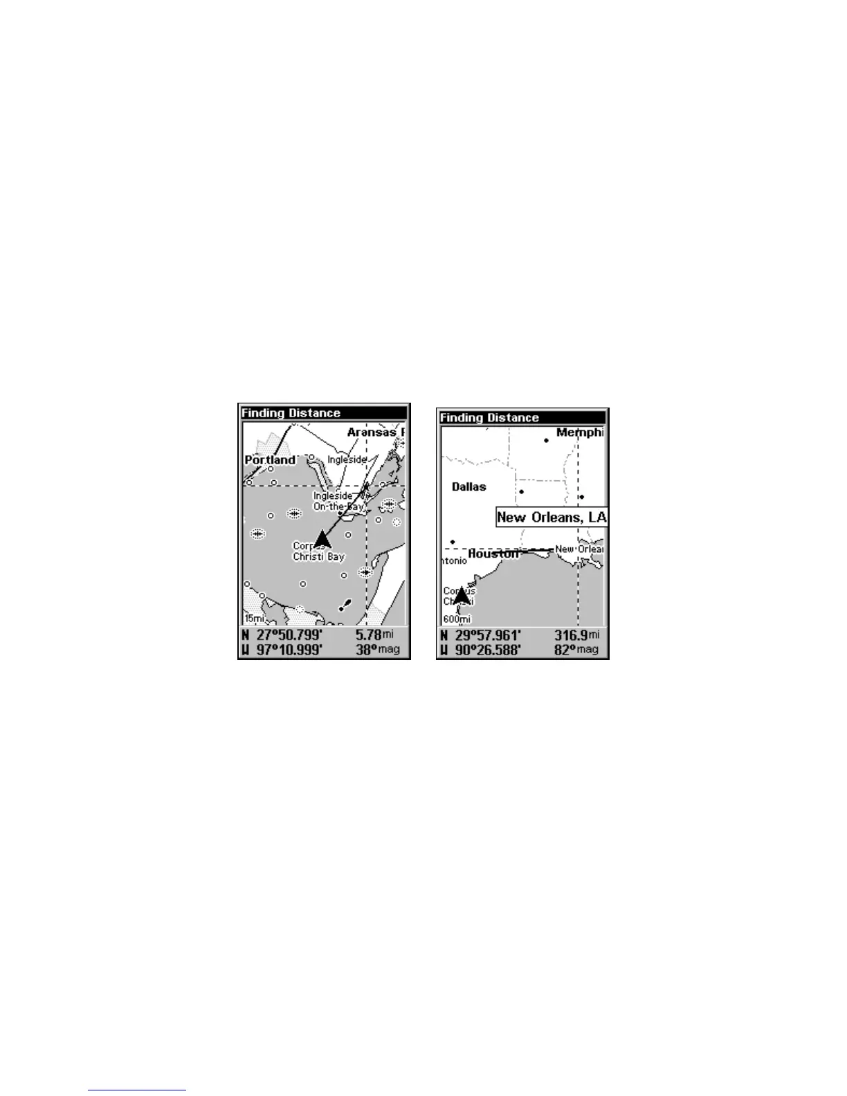 1. While on the Map Page press MENU|↓ to FIND DISTANCE|ENT.