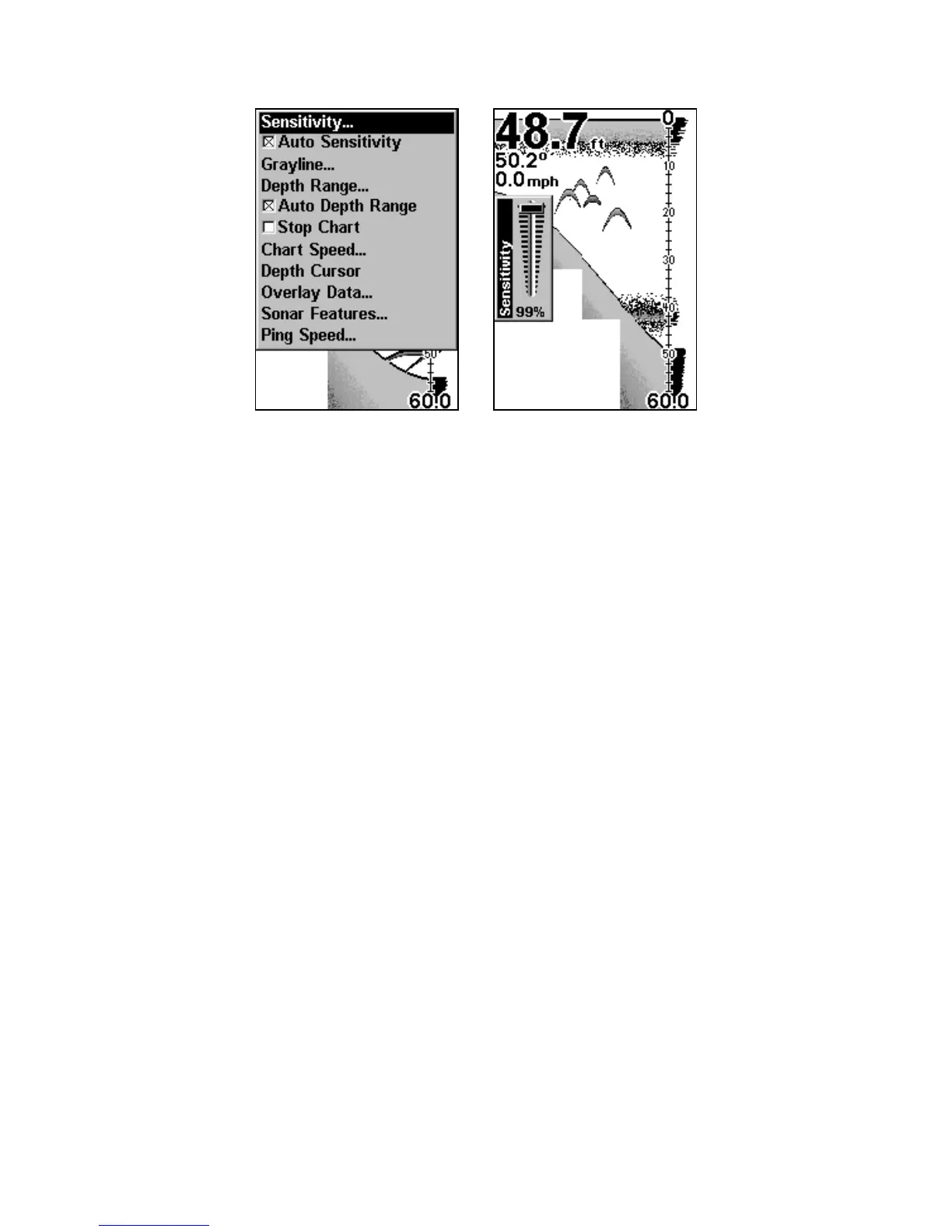|ENT|↑ to SENSITIVITY|ENT. Press ↓ or ↑ to pick a different sen-