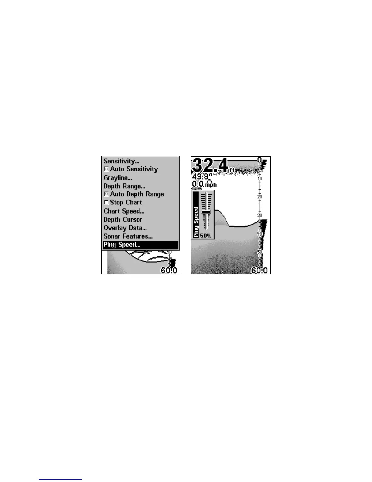 Press ↓ to decrease ping speed. When it is set at the desired level, press