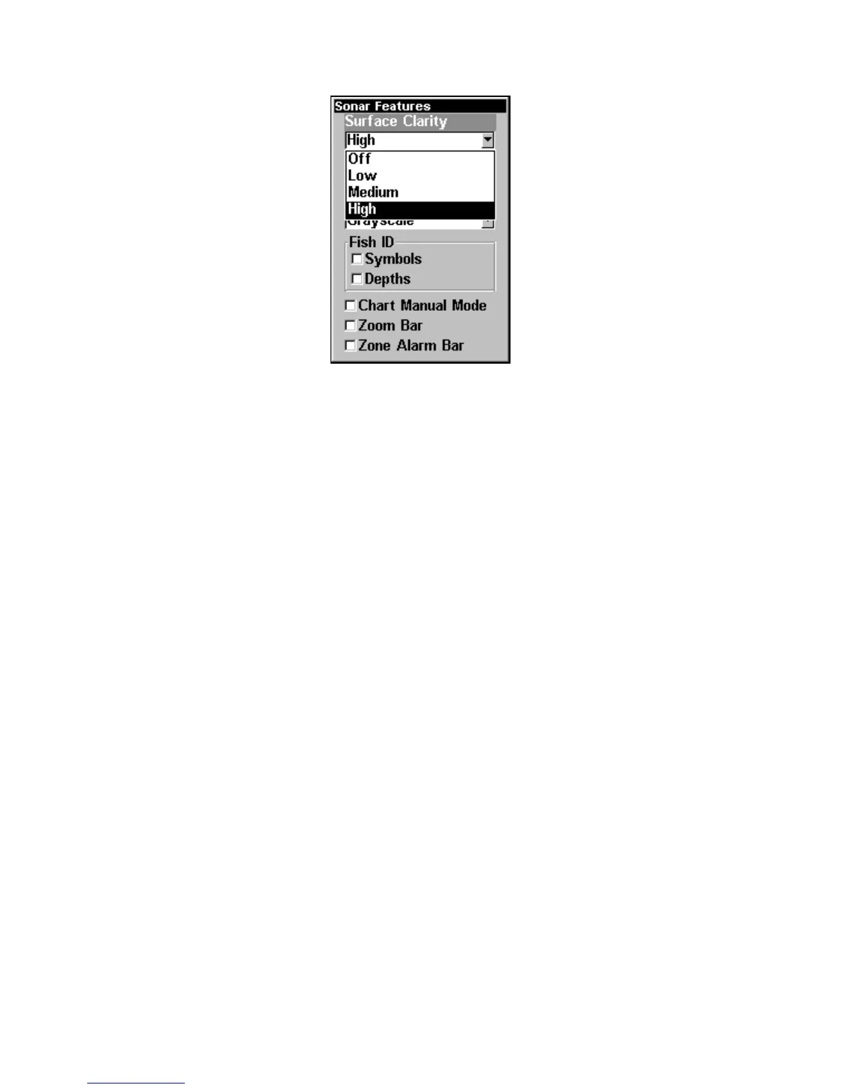 The Zoom in key is used to enlarge small detail, fish signals and the