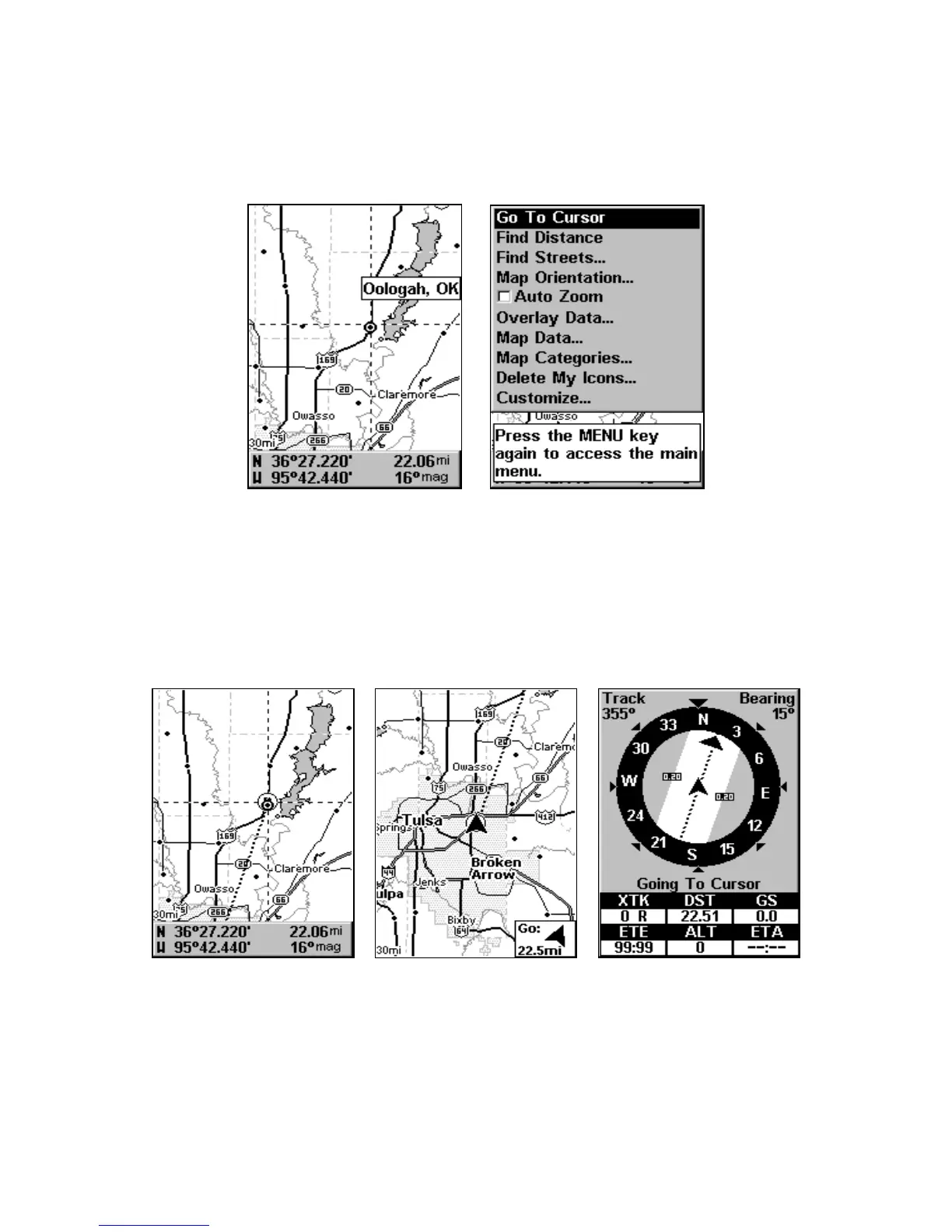 3. Press MENU|ENT to begin navigating to the cursor location.