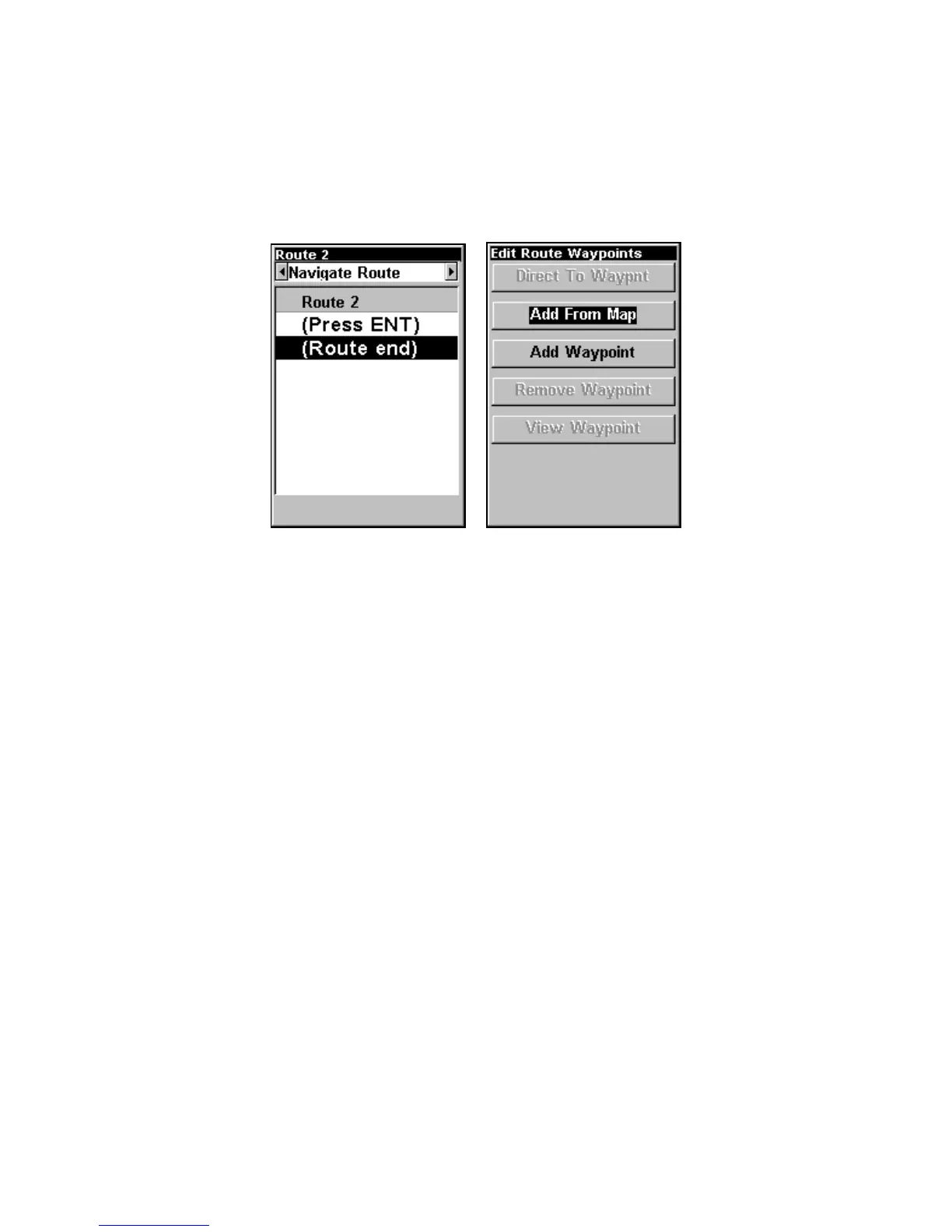 Edit Route menu (left). Edit Route Waypoints menu (right),