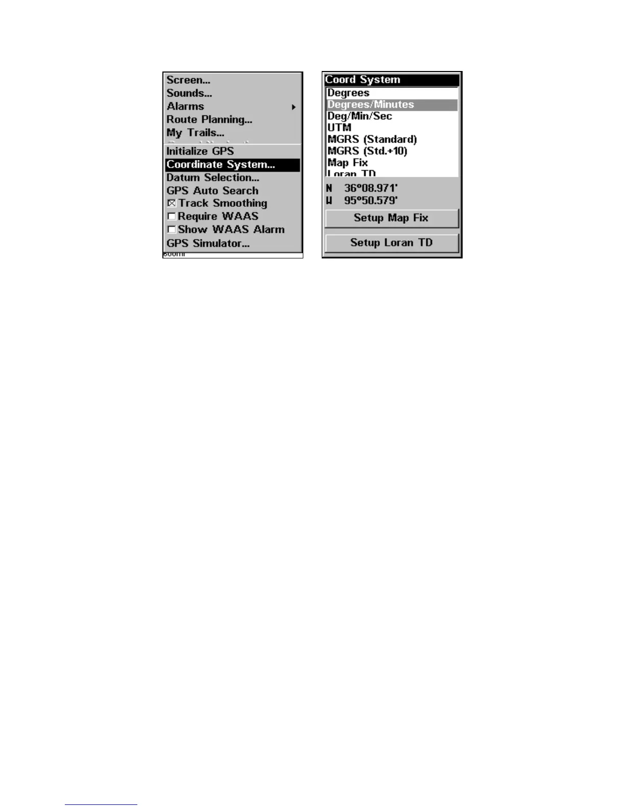 and thousandths of a minute (36° 28.700'); or degrees, minutes, seconds