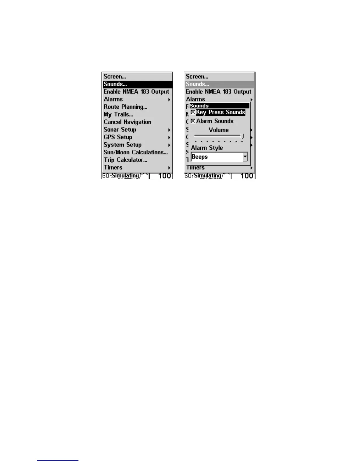 To access Sounds menu: press MENU|MENU|↓ to SOUNDS|ENT.