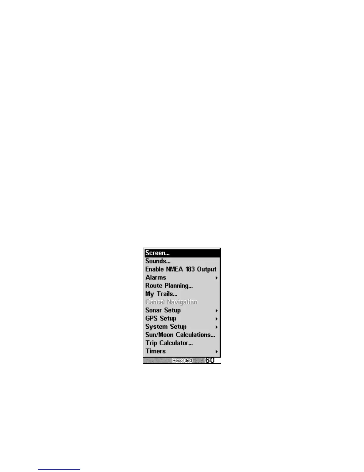 Sonar Mode has two primary menus: the Main Menu and the Sonar