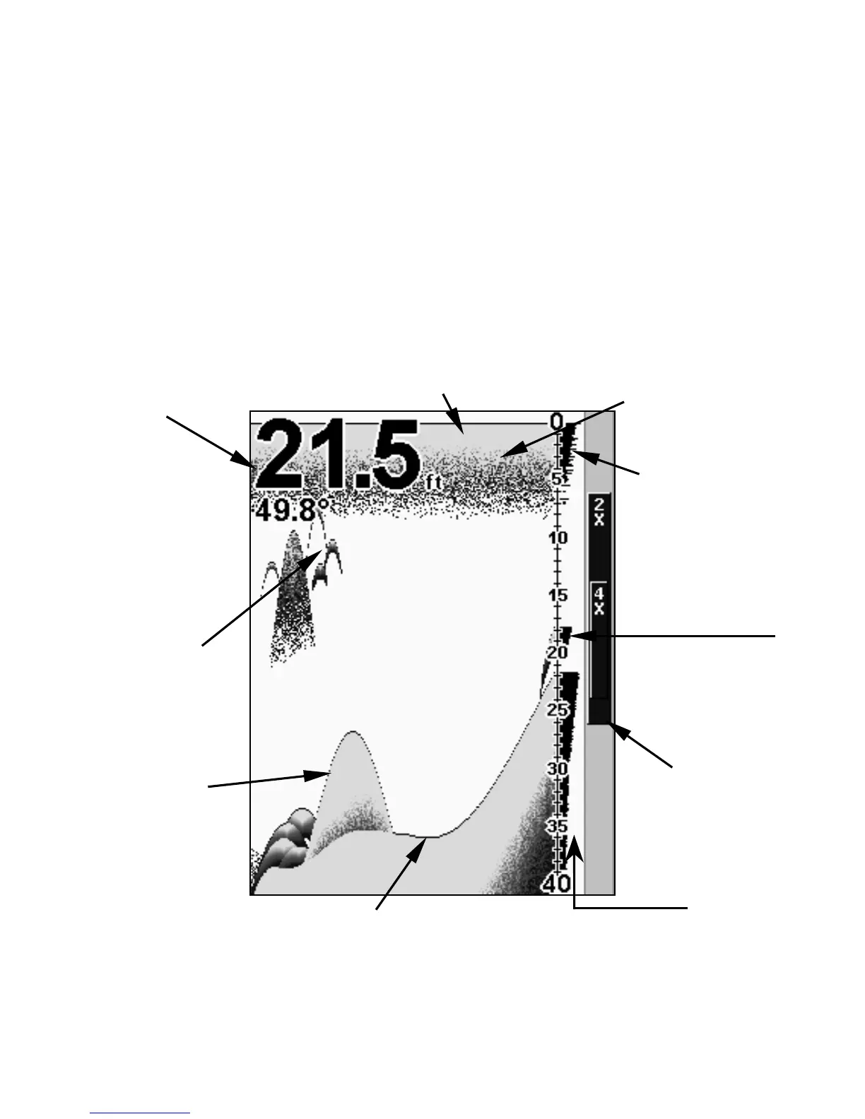across the screen, displaying sonar signals that represent fish, struc-