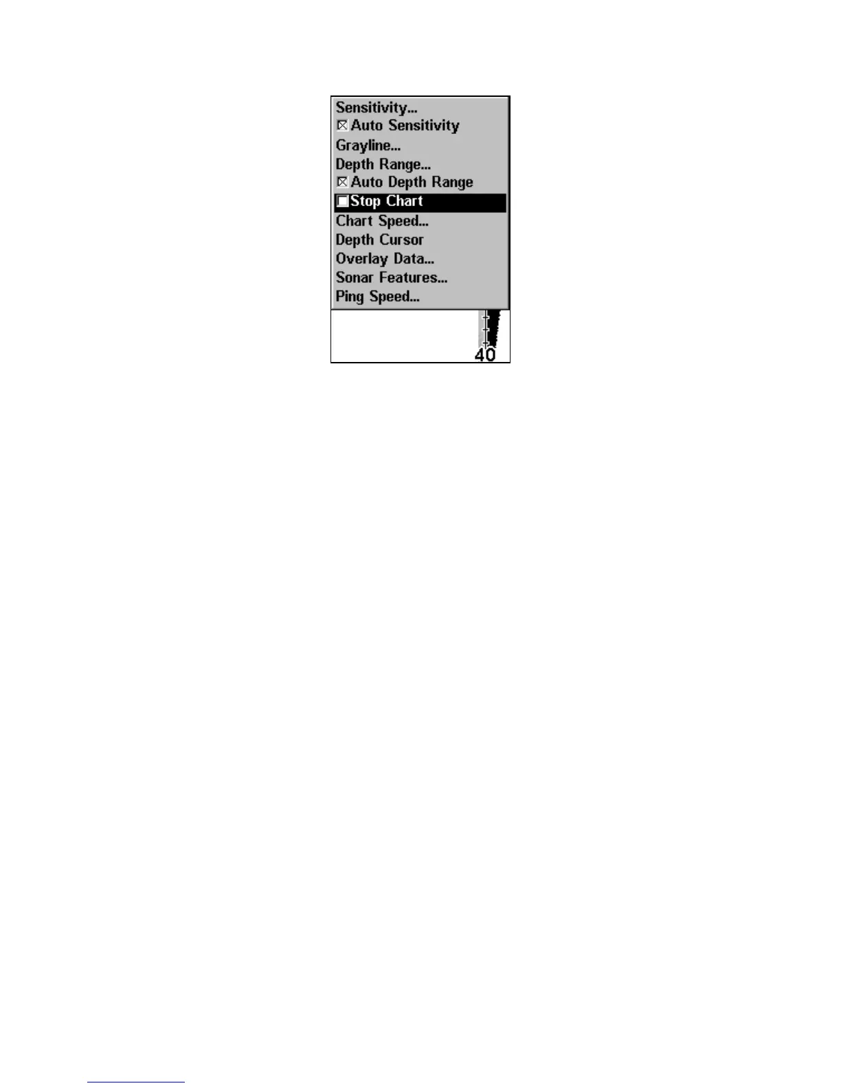 Sonar Menu with Stop Chart selected. The box is unchecked, indicat-