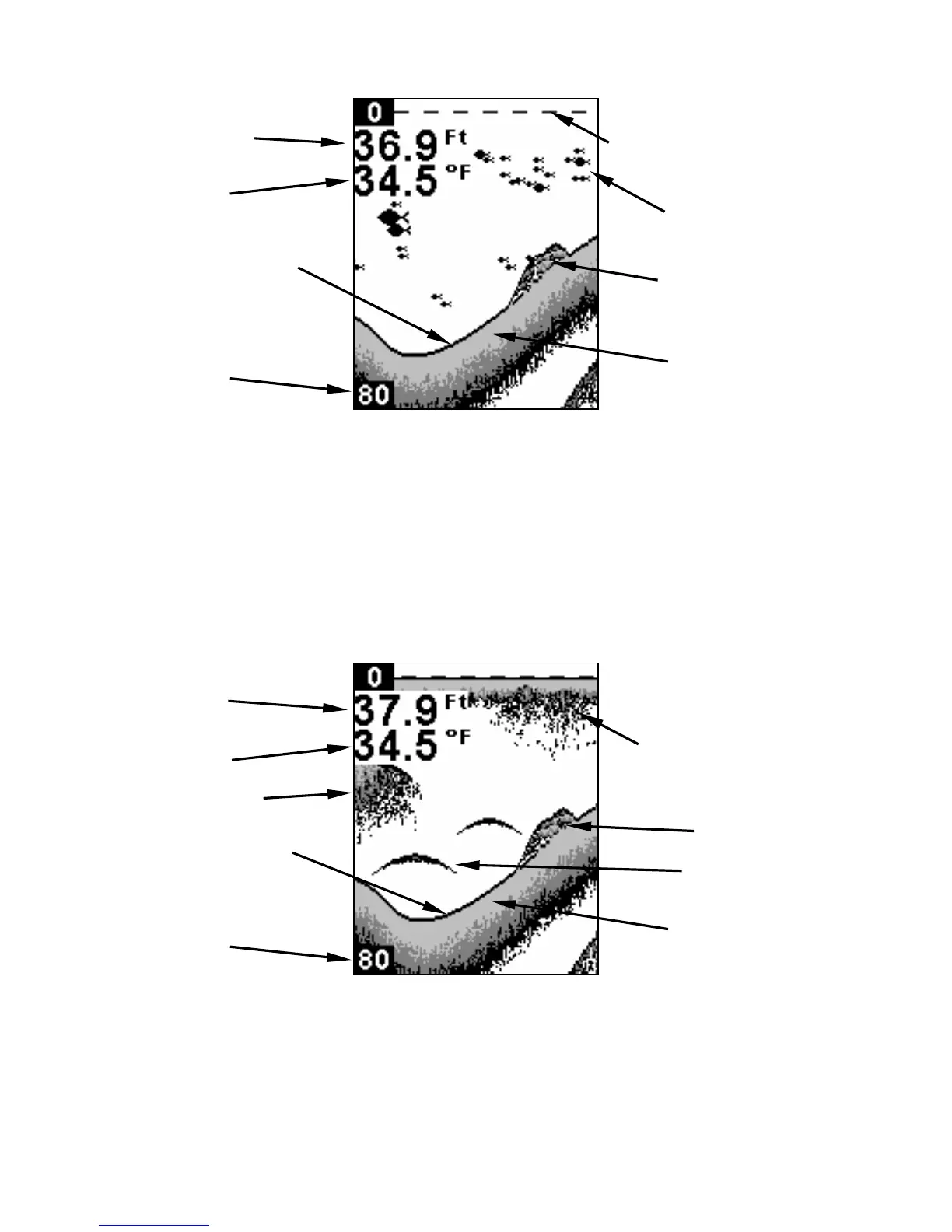 dessus) et la température (juste en-dessous). La fontion de Fish I.D. est