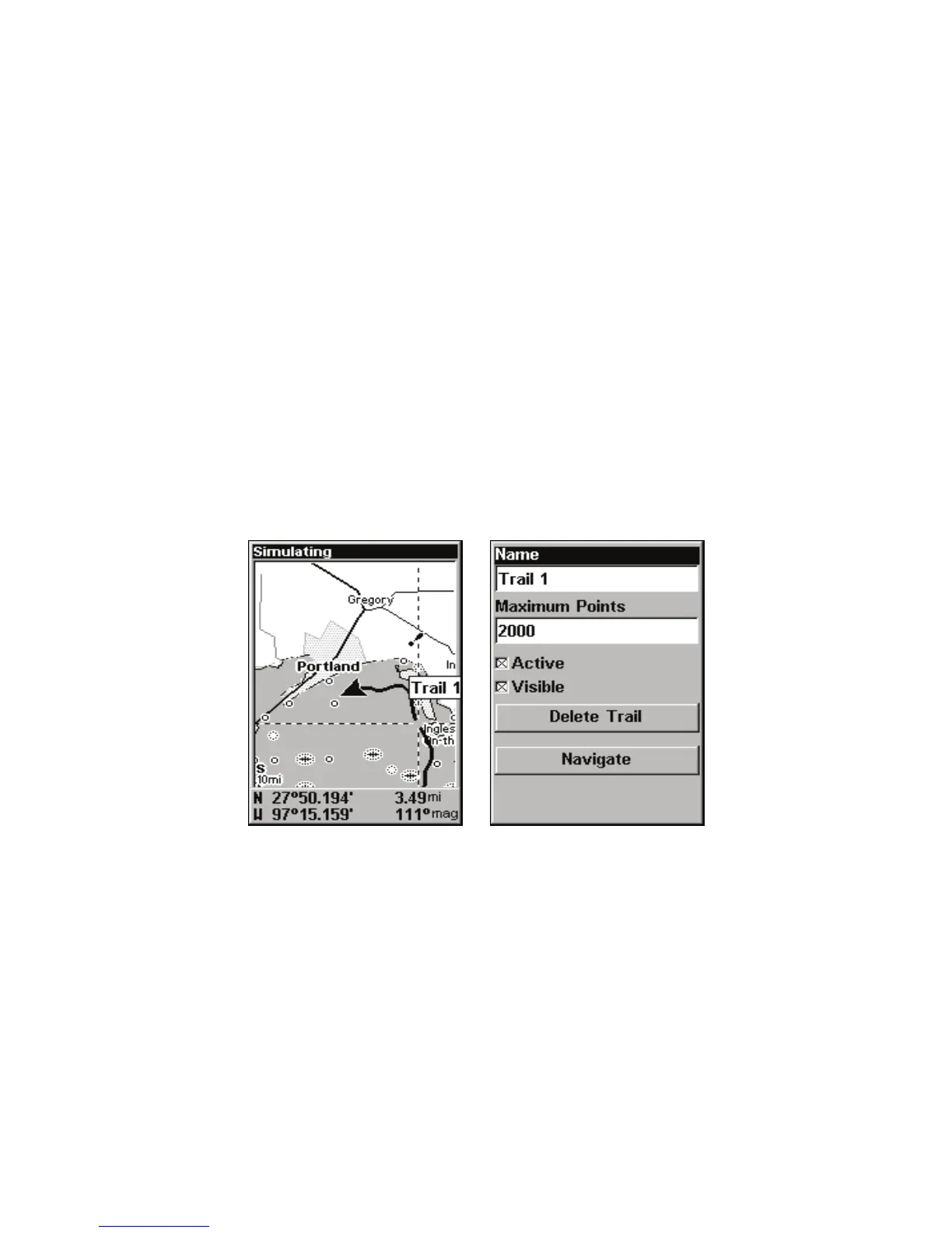 lected point on the trail. The Edit Trail menu (right).