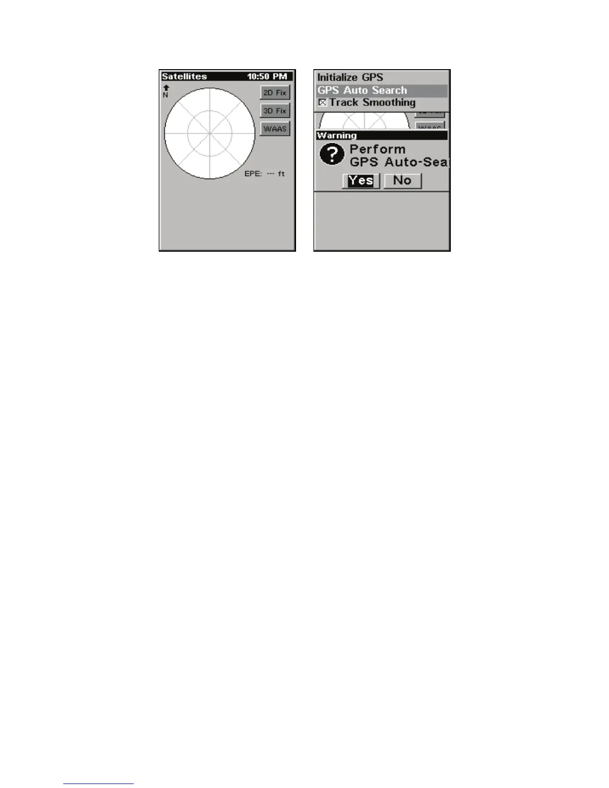 MENU|↓ to GPS AUTO SEARCH|ENT|← to YES|ENT.