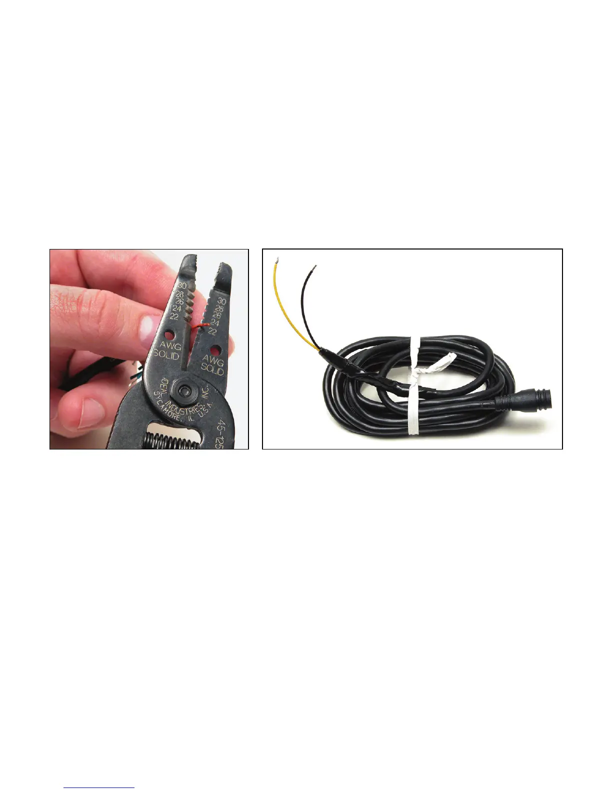 ends exposed.) Use a pair of wire pliers to strip about 1/4-inch (6.35 mm) o