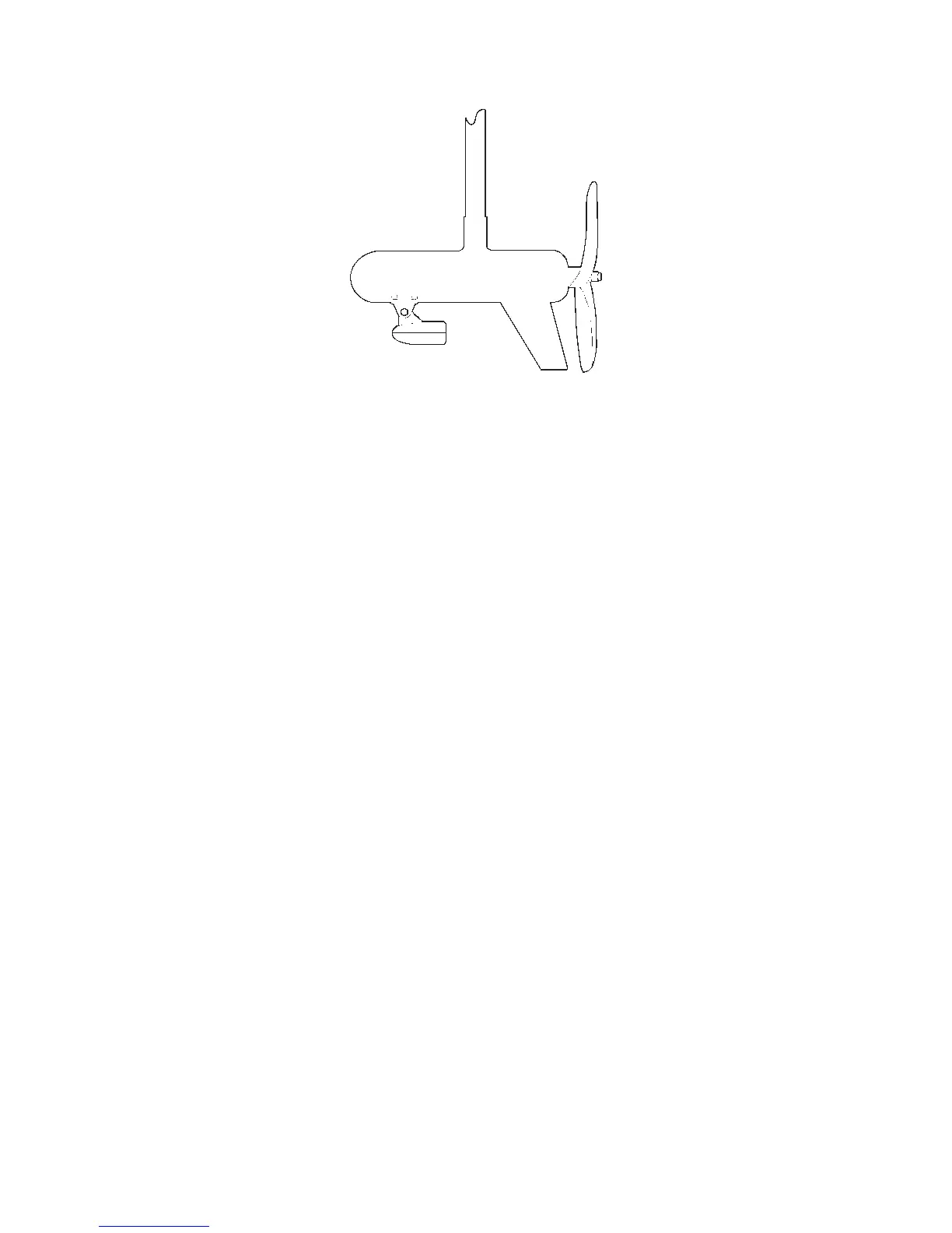 Transducer mounted on trolling motor, side view.