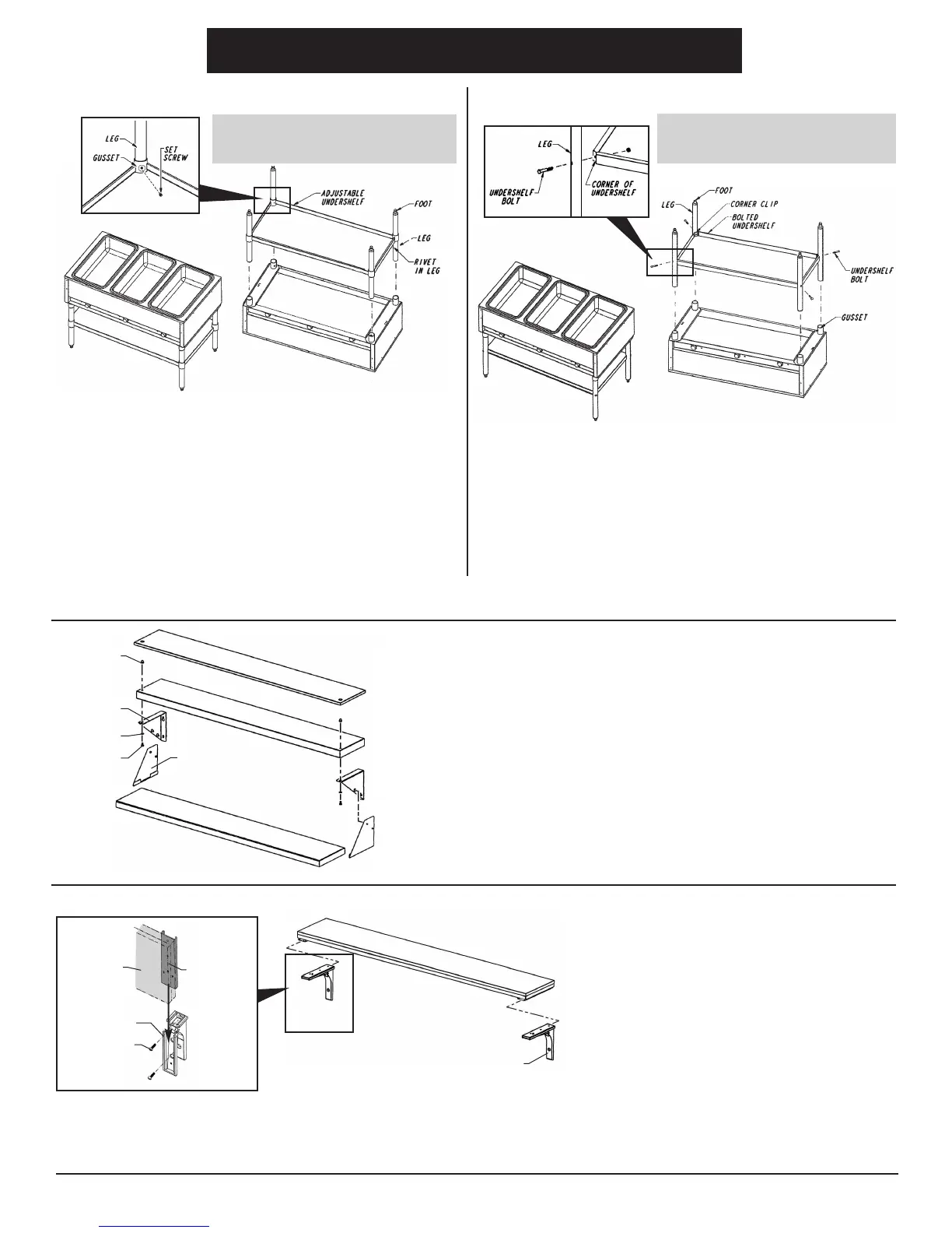 4. Tighten set screws in undershelf gussets to secure undershelf